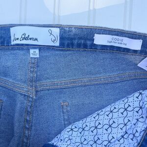 Featuring a wide-leg style with a high rise and side detailing. These women's jeans are designed for a regular fit and have a waist size of 31 inches. The brand, Sam Edelman, is known for its high-quality and fashionable clothing items, making these jeans a stylish and trendy choice for any woman's wardrobe. Light wear around hem