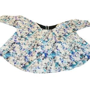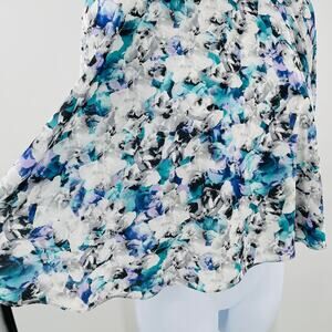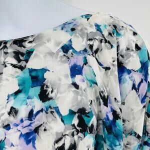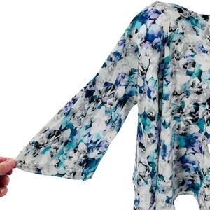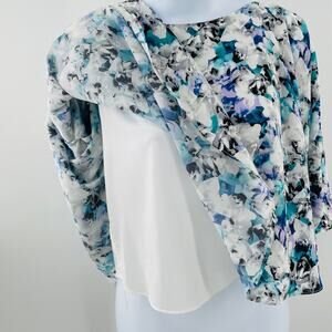 Sam Edelman Blue White Chiffon 3/4 Sleeve Oversized Slinky Swing Blouse Top XS