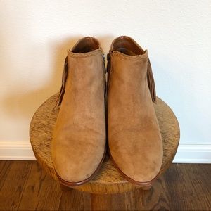 Suede ankle boot w fringe and side zip