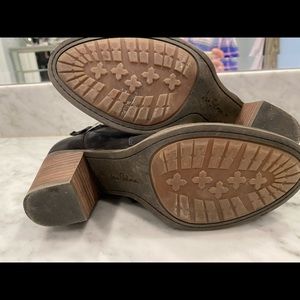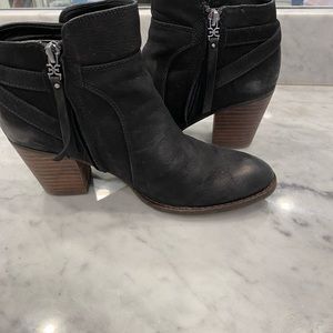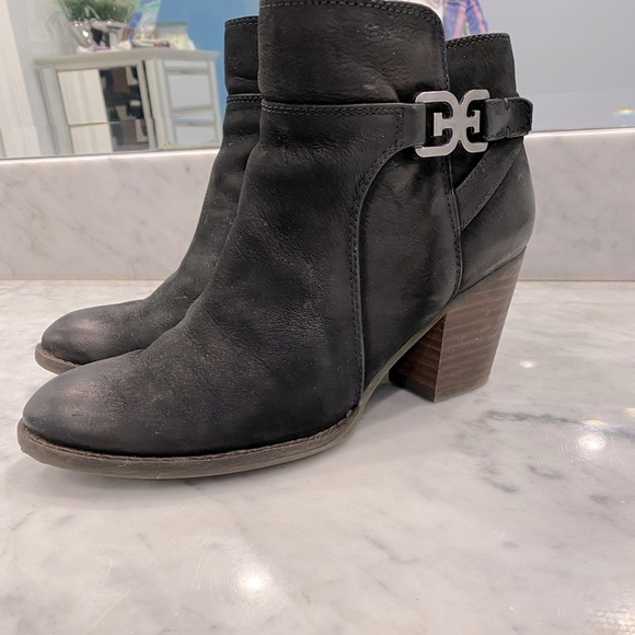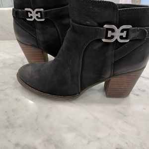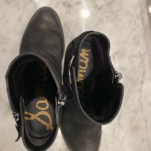 Sam Edelman Booties, size 8. Black suede with about 2.5" heel. Rubber soles makes for easy walking and comfortability! Very good condition, just purchased in fall 2020. I will not wear them anymore as it is too hot for TX summer :)