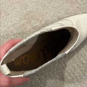 Elevate your style with these chic white croc-embossed ankle boots. Perfect for any occasion, these boots offer both comfort and elegance.