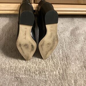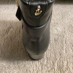 Black leather Sam Edelman booties with gold accents and wedge heel..worn once..