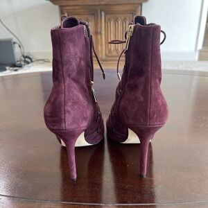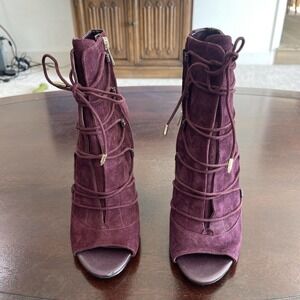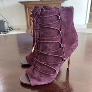 Sam Edelman Booties 7.5 Asher Wine Suede Open Toe Lace Up Ankle Boots Zip