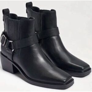 Sam Edelman Boots Size 6.5 Bellamie Black Leather Harness Pull-On Ankle Booties
