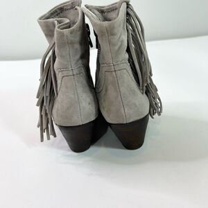 Sam Edelman Boots Womens 9M Gray Louie Western Style Suede Fringed Ankle