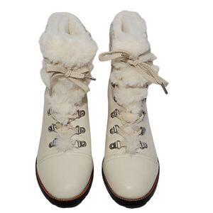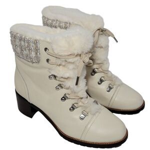 Sam Edelman Boots Womens Size 8 Manchester Ivory Leather Faux Fur Lace Up Heel