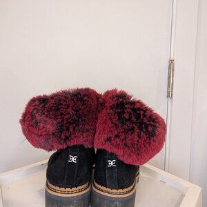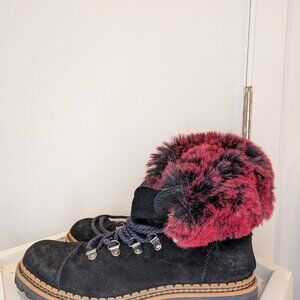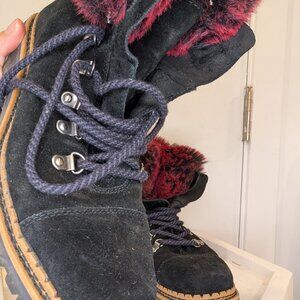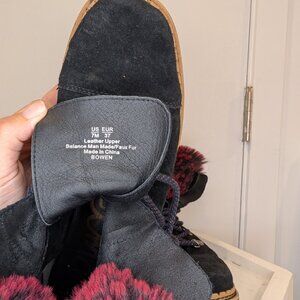 Sam Edelman Bowen Black Leather Faux Fur Lined Lace Up Boots Size 7