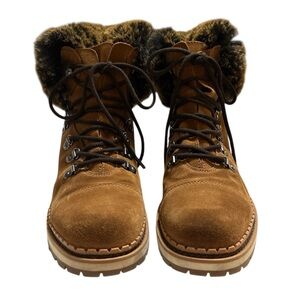 Sam Edelman Bowen Brown Suede Faux Fur Lace Up Boots in Luggage Brown Sz. 9.5