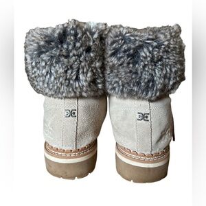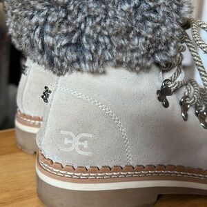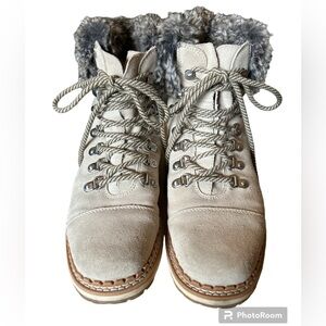 Sam Edelman Bowen Gray Suede Lace Up Faux Fur Trim Lug Sole Ankle Boots - 7