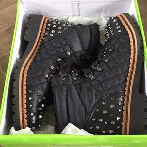 Sam Edelman Bren Quilted Studded Black Boots. Size 7.5. Partial shearling interior. In excellent preowned condition condition.
