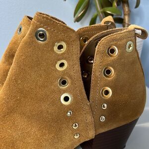 Sam Edelman Brown Studded Eyelet Cut Out Rubin Suede Bootie Sz 8 Block Heel