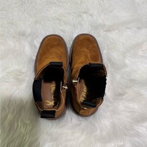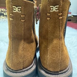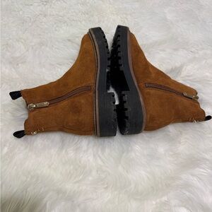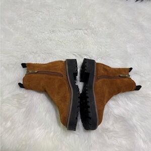 Experience timeless style with these Sam Edelman Chelsea boots, crafted from rich brown suede. Featuring elastic side panels for easy wear and a durable treaded sole, these boots offer both elegance and practicality.