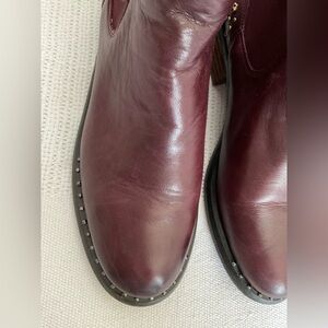 Sam Edelman Burgundy and Gold Ankle Boots with Chunky Heel