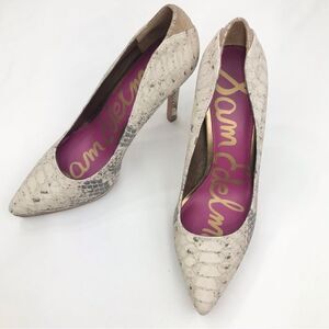 Sam Edelman CELIA Cream Snake Print Leather Pointed Toe High Heel Pumps Like New