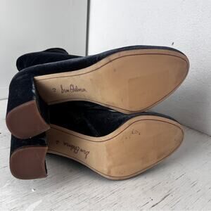 Elevate your style with Sam Edelman’s Calexa luxurious blue velvet heeled boots. These mid calf sock boots feature a sleek silhouette and a comfortable block heel, perfect for both casual and formal occasions. The plush velvet material adds a touch of sophistication, making them a standout addition to any wardrobe.