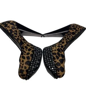 Sam Edelman Calf Hair Leopard Print Studded Heels, fair to good condition, some studs are missing (see pics) some peeling on inside of shoes (see pics) some scratches on heels, soles in good condition, size 7 1/2
