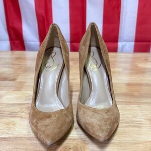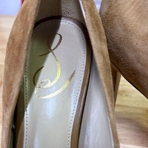 Chic camel suede heels. Versatile and stylish. Ideal for any occasion.