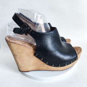 Sam Edelman Camilla Black Leather Wooden Wedge Platform Slingback Sandals 10