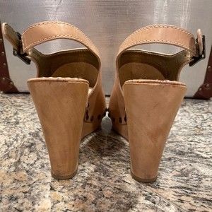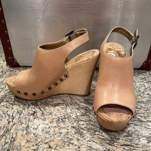 Sam Edelman Camilla Wedge Sandal Women 7.5 Nude Leather Buckle Slingback