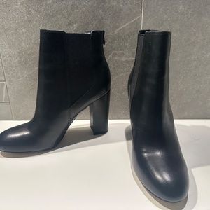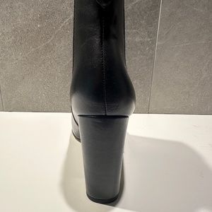 Almost brand new. Only worn once indoors. Black leather with an approximate 4 inch heel.