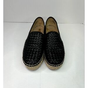 Sam Edelman Catherine Black Leather Platform Espadrille Slip On Shoes Gold