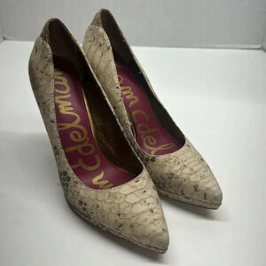 Sam Edelman Celia High Heels Platform Stiletto Leather Snake Skin Tan Brown 6