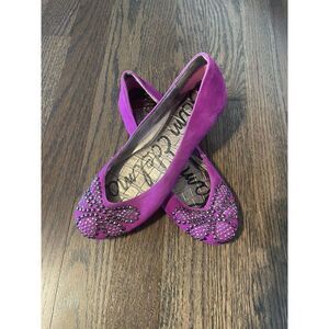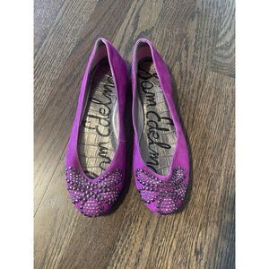 Sam Edelman Charleen Ballet Flats Shoes 6 M Studded Leather Suede Fuchsia