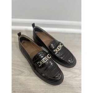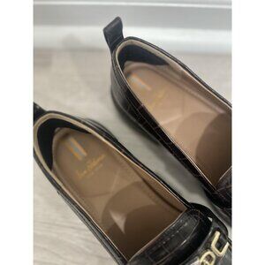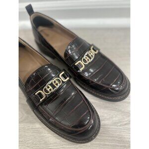 Sam Edelman Christy Brown Croc Embossed Patent Loafers Womens 9 Block Heel