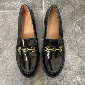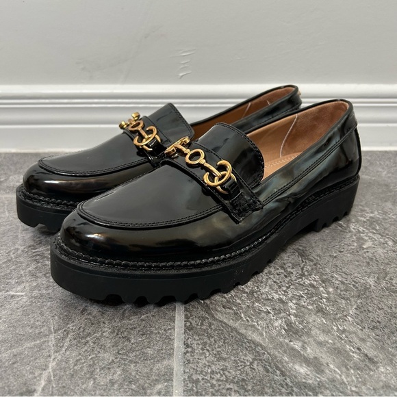 Sam Edelman Circus Black Patent Chunky Loafer Horse Bit Faux Leather Size 9.5