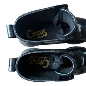 Women’s size 6 shiny rain combat boots by Sam Edelman Circus. These boots have little to no wear and are in great condition. Patent leather looking uppers with composition leather outsoles.