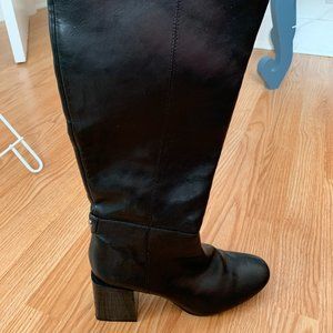Block heeled black boots from Circus by Sam Edelman. Come up to right below the knee on someone 5'5" and fit true to size (size 8). Normal width for foot and calf. Not sure what the original name of the style is. They've been worn maybe twice, very comfy but just not my style. Soles are almost completely clean but have a little bit of glitter on them from a previous New Year's Eve.
