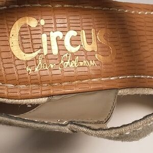 Sam Edelman Circus Women's Neutral Gray Delalah Suede Epadrille Wedge Heels Size 8 Ankle Straps Sandals. Gently Used Looks Like New.