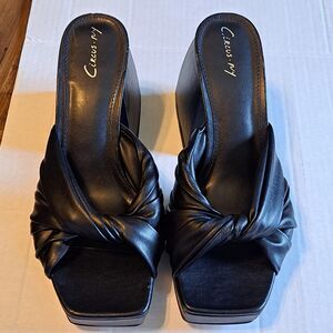 Sam Edelman Circus NY Marianna Sandal Black Slide Block Heel Vegan Womens Sz 8