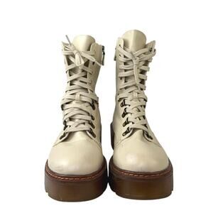 Sam Edelman Circus Sanders Ivory White Leather Round Toe Lace Up Combat Boots 11