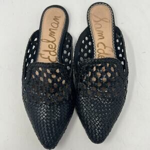 Sam Edelman Clara Black Woven Leather Mules, Size 6.5 Minimalist Resortwear