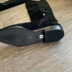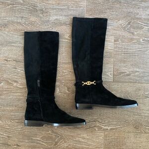 Beautiful soft suede boots from Sam Edelman! One inch heel - gold accent - these go sleek modern but also kind of equestrian -very versatile.