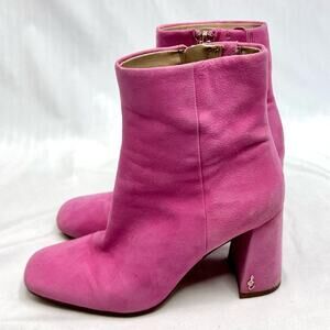 Sam Edelman Codie Pink Suede Black Heel Ankle Booties – Size 6.5
