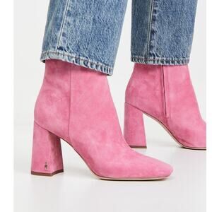 #SamEdelman #PinkBoots #SuedeBooties #AnkleBoots #BlockHeelBoots #StatementShoes #SquareToeBoots #FallStyle #WinterFashion #DesignerBooties