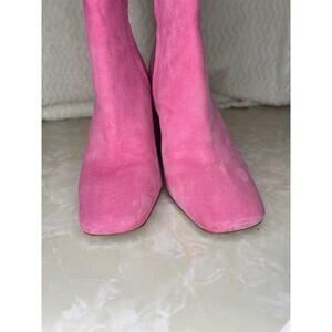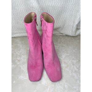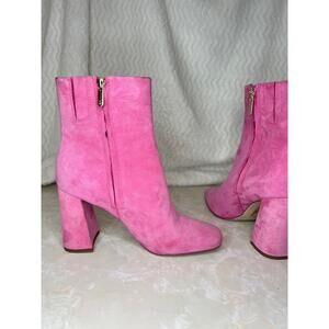 Sam Edelman Codie Square Toe Block Heel Bootie Pink Confetti Suede Womens 7 US
