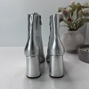 Sam Edelman Codie2 Square Toe Block Heel Ankle Boots Silver Metallic