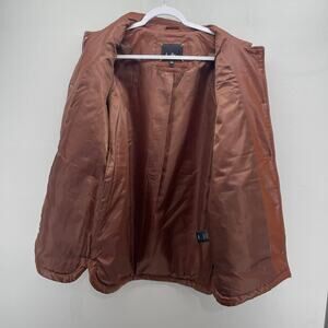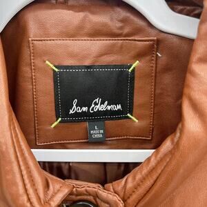 Sam Edelman Cognac Brown Box Quilted Faux Leather Button Up Shacket Jacket
