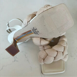 Braided straps add abundant texture to an outfit-making sandal set on a flared heel