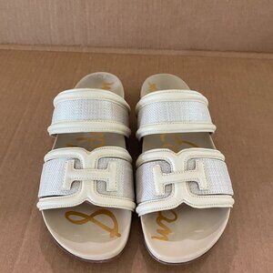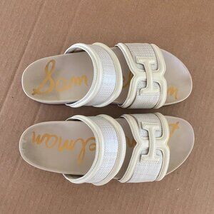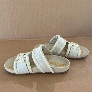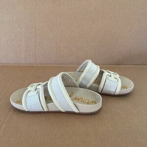 Stylish cream sandals with double straps. Comfortable and chic design. Perfect for casual wear.
