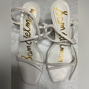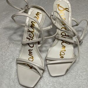 Chic cream heels with elegant straps. Perfect for any occasion. Stylish and comfortable.