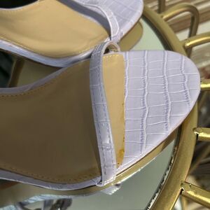 Size 8. Glue is visible on the insole a small spot on the strap and back left heel. . All your stiletto dreams will come true with Doran. Her slim straps and sharp heel add a splash of energy to a dull day.