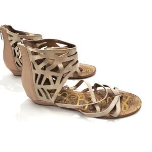Sam Edelman | Dana Natural Cutout Leather Sandals Beige Nude Strappy