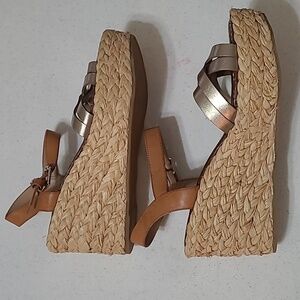 Sam Edelman Darline tan and gold wedge sandals size 10