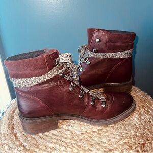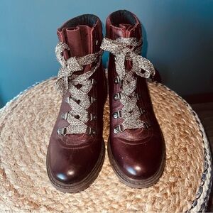 Deep Burgundy Smooth and Suede Leather Upper with Lace Up Closure.