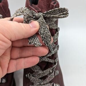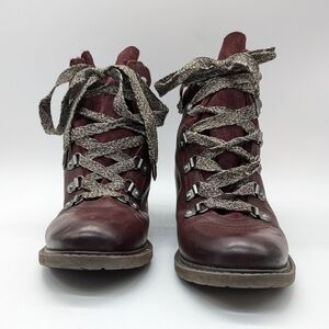 Sam Edelman Darrah maroon leather lace up ankle boot 7. Missing one silver accent at the end of one lace (see photo)