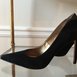 Black Suede pumps in excellent used condition. I replaced these with the Jimmy Choo Romy and decided I didn't need 2 pairs of suede pumps. My loss is your gain.